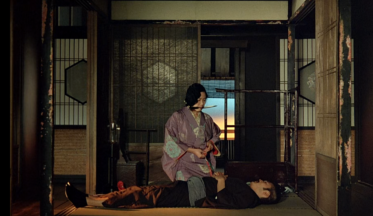 이 두 사람은 자신들도 제어할 수 없는 열정에 이끌리면서 결국 '기치조'는 자신을 죽이라고 하고 '사다'는 '기치조'의 목을 졸라 살해하고 그의 성기를 잘라 그 피로 '사다와 기치조, 둘이서 영원히'라는 글을 남깁니다.