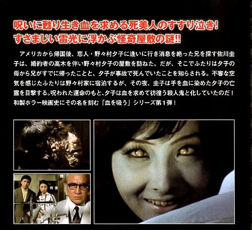 이 작품은 1970년대 초, 토호에서 만든 영화들이 모두 흥행이 저조하면서 괴기 노선으로 선회한 시리즈로 영국 '해머필름'의 '드라큘라' 영화를 기본 베이스로 일본판 드라큘라 영화로 만들고자 기획한것이 시작이지만 첫번째 작품은 흡혈귀 영화와는 다소 거리가 있습니다.